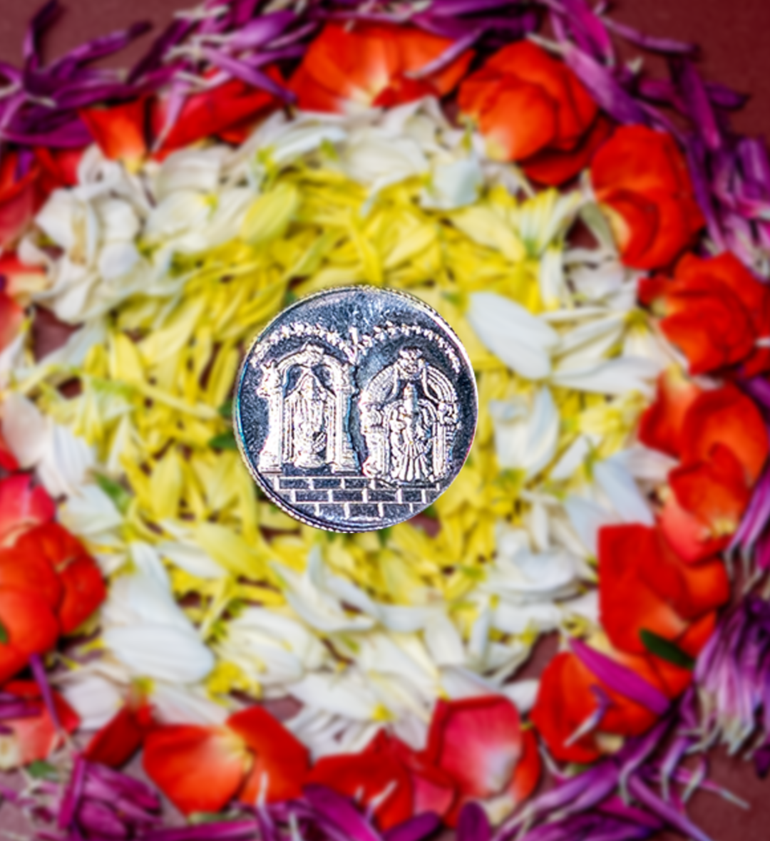 Introducing our intricately carved sacred silver coin containing the divine impressions of Lord Balaji and his consort Maa Lakshmi. Lord Balaji is the “Kaliyuga Pratyaksha Devata”, i.e the deity of Kaliyuga. Worshipping him can help devotees get freedom from all their past sins and attain peace, happiness and harmony in life.