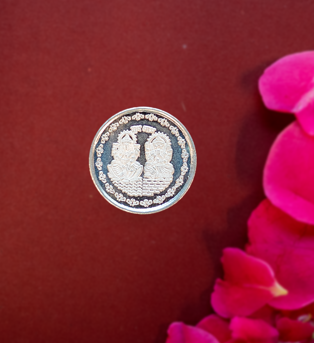 Maa Lakshmi is the giver of wealth and prosperity. Lord Ganesha is the deity of wisdom. He is also the Vighnaharta, the remover of all obstacles in one’s life. The silver coin contains the divine impressions of Maa Lakshmi and Lord Ganesha.