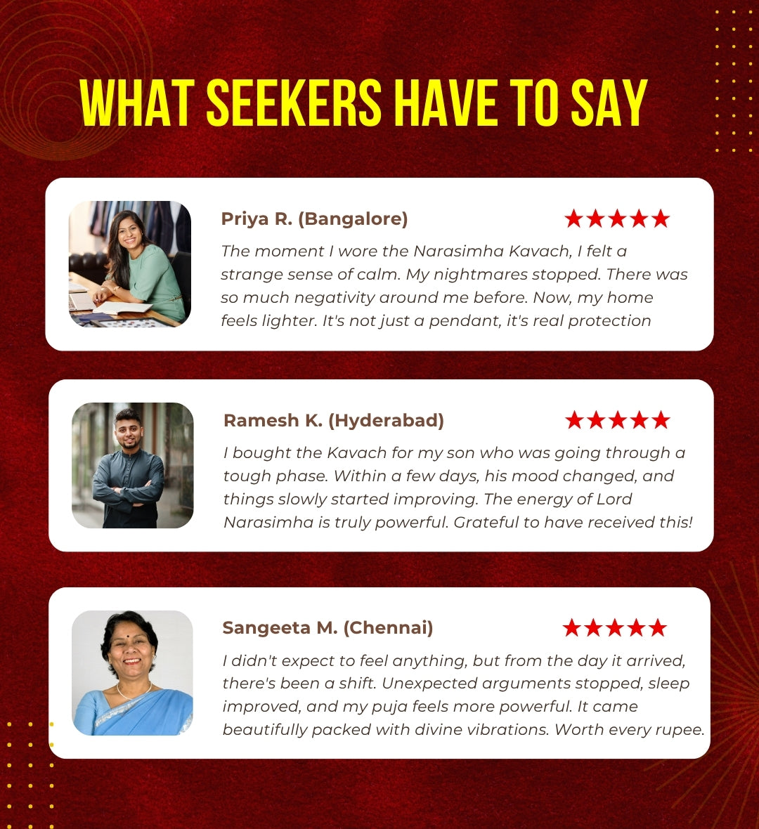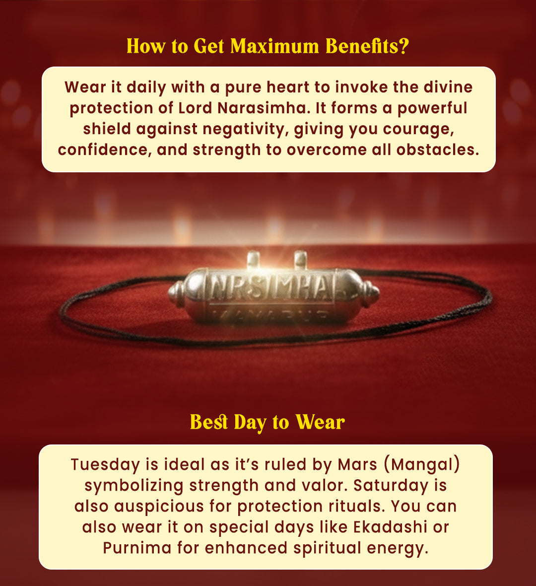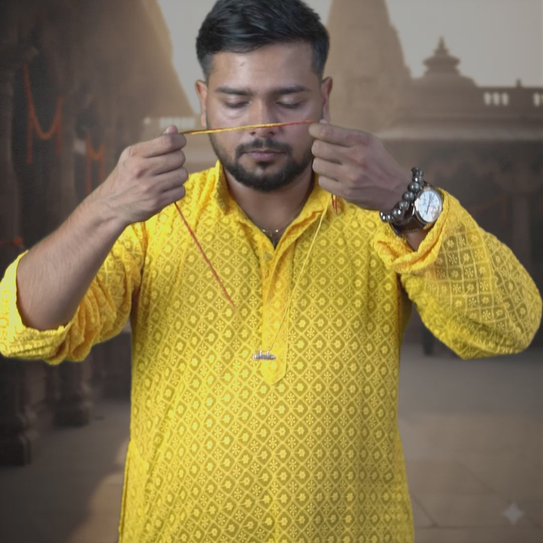 You wear it for Moksha-Raksha-Siddhi — liberation, protection, and spiritual victory.