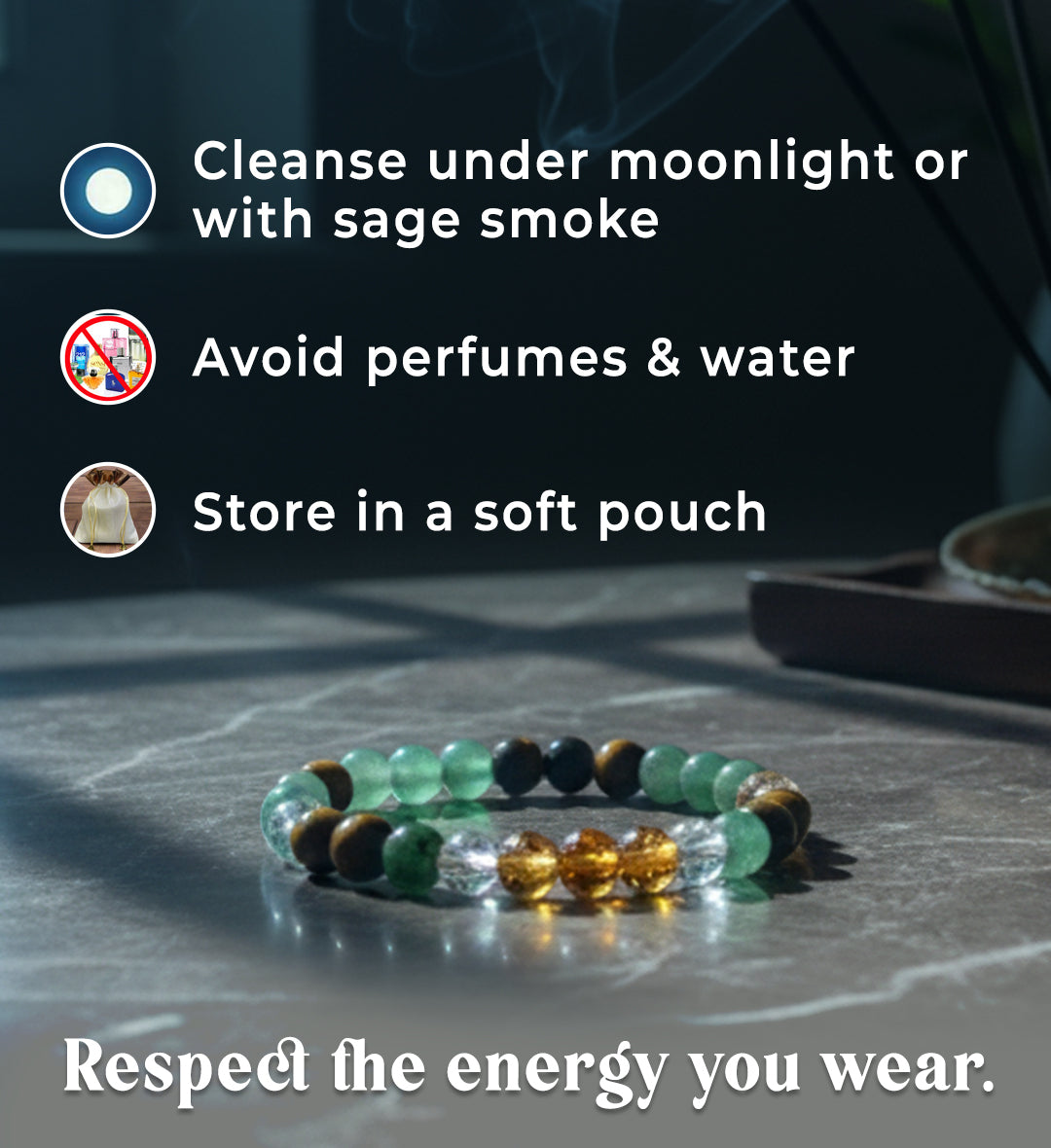 The Money Magnet Bracelet is a fusion of four powerful crystals — Pyrite, Tiger’s Eye, Green Aventurine, and Citrine — each carefully chosen for its unique ability to activate confidence, focus, and prosperity.